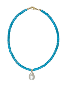 Blue Turquoise Layering Necklace with Freshwater Pearl Pendent
