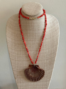 Coral Necklace with Large Natural Shell Pendent