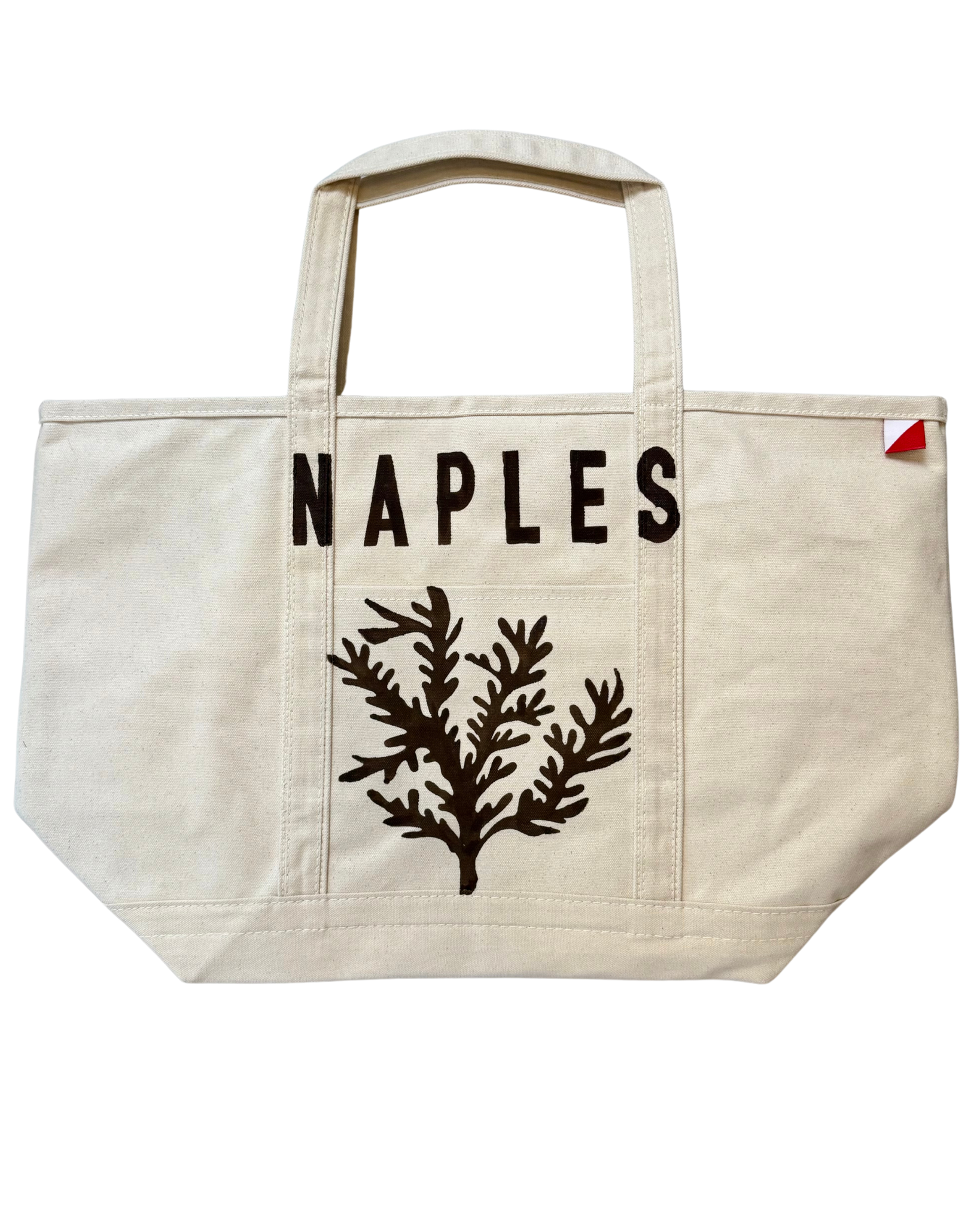 Inspired by Naples’ timeless charm, this large canvas tote is hand-painted exclusively for Southern Marc Designs by Boca Grande artist LBS Designs. Featuring a striking coral motif and bold Naples lettering, each piece captures the essence of the city’s iconic seaside heritage — where refined style meets laid-back living.