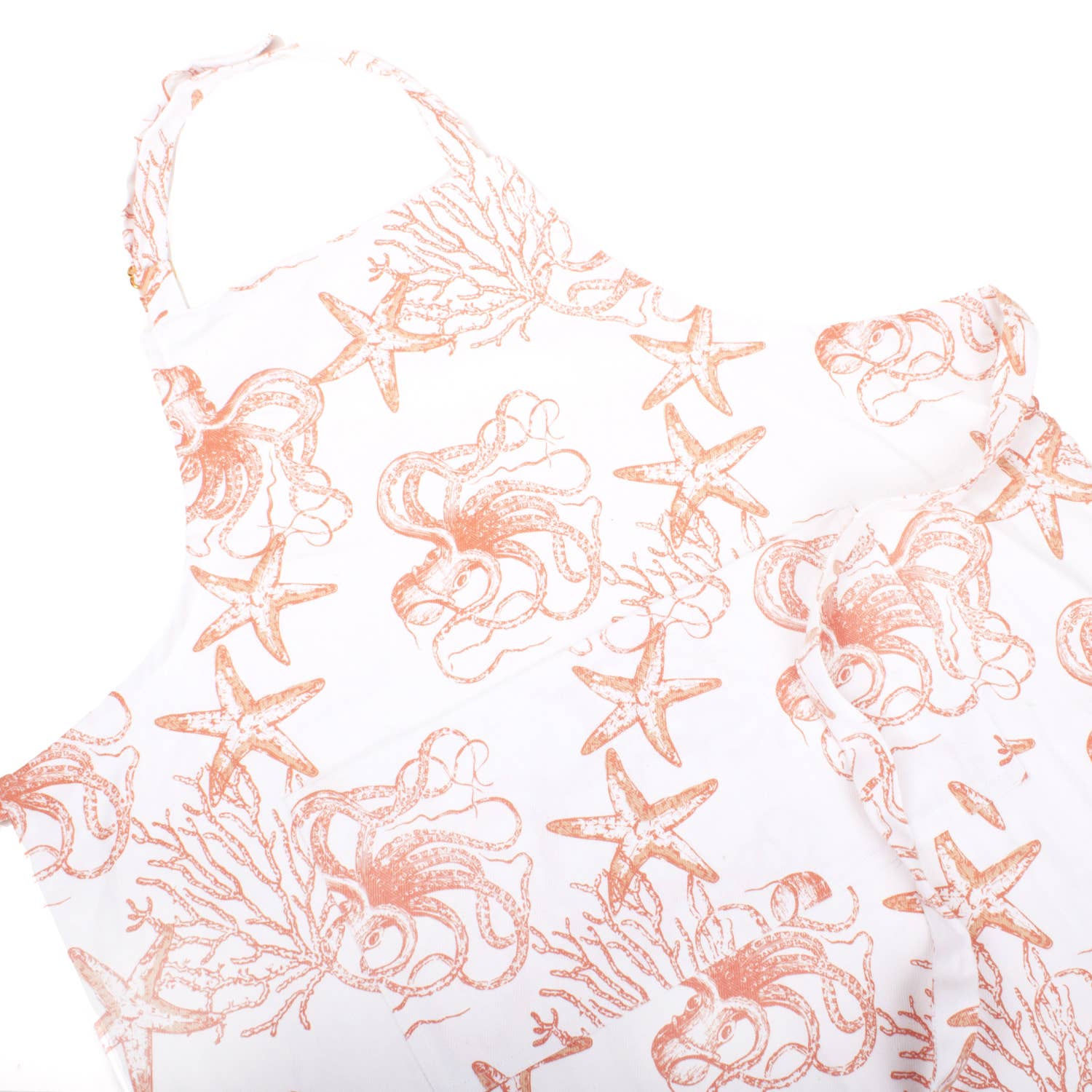 Get cooking with the beautiful Coral Octopus Apron! Perfect for the everyday cook, its 100% cotton fabric protects your clothes from spills or splatters, while the adjustable neck strap makes it the ideal fit for all sizes. This apron also comes equipped with a spacious front pocket to free up your hands in the kitchen, making baking easier than ever before. Plus, with its machine washable material you can enjoy unparalleled convenience as you create delicious meals day after day. Whether you’re an experienced chef or just starting out, let our Coral Octopus Apron lead your culinary journey with an elegant appeal!