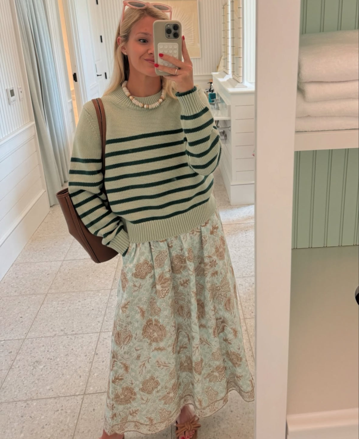 The Lagos Collar features five natural baroque pearls cushioned between gold accents and handmade African glass beads. Perfect for your upcoming summer vacation. Made in the USA of imported materials.