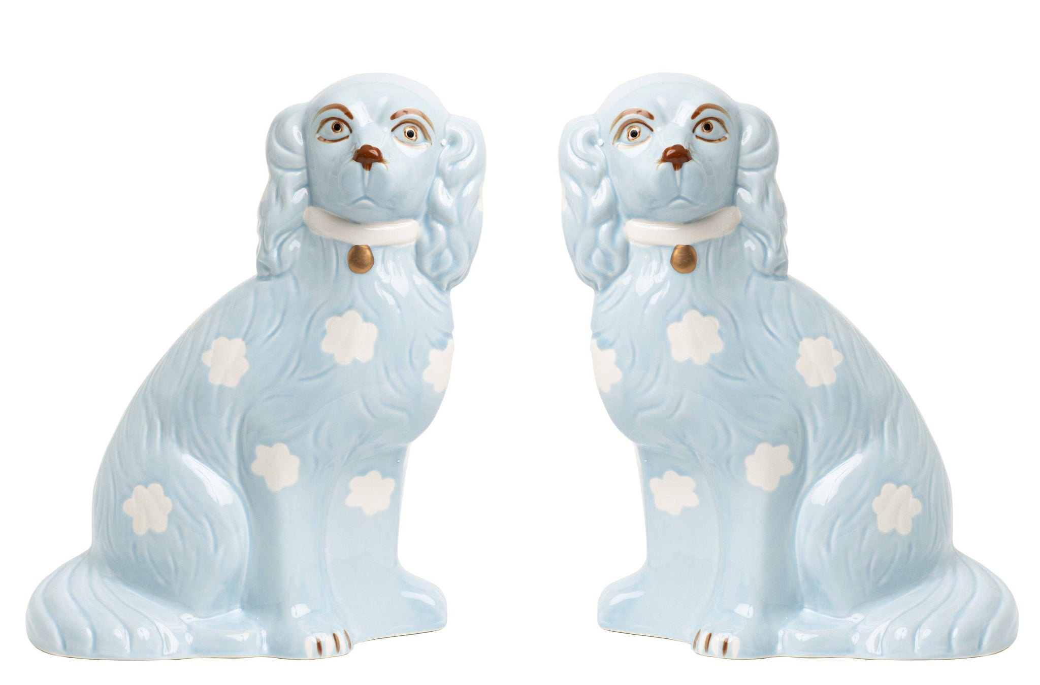 Enhance your living space with the timeless charm of our Pale Blue Staffordshire Dogs. Crafted with meticulous attention to detail, these exquisite figurines are a testament to traditional craftsmanship and enduring style.