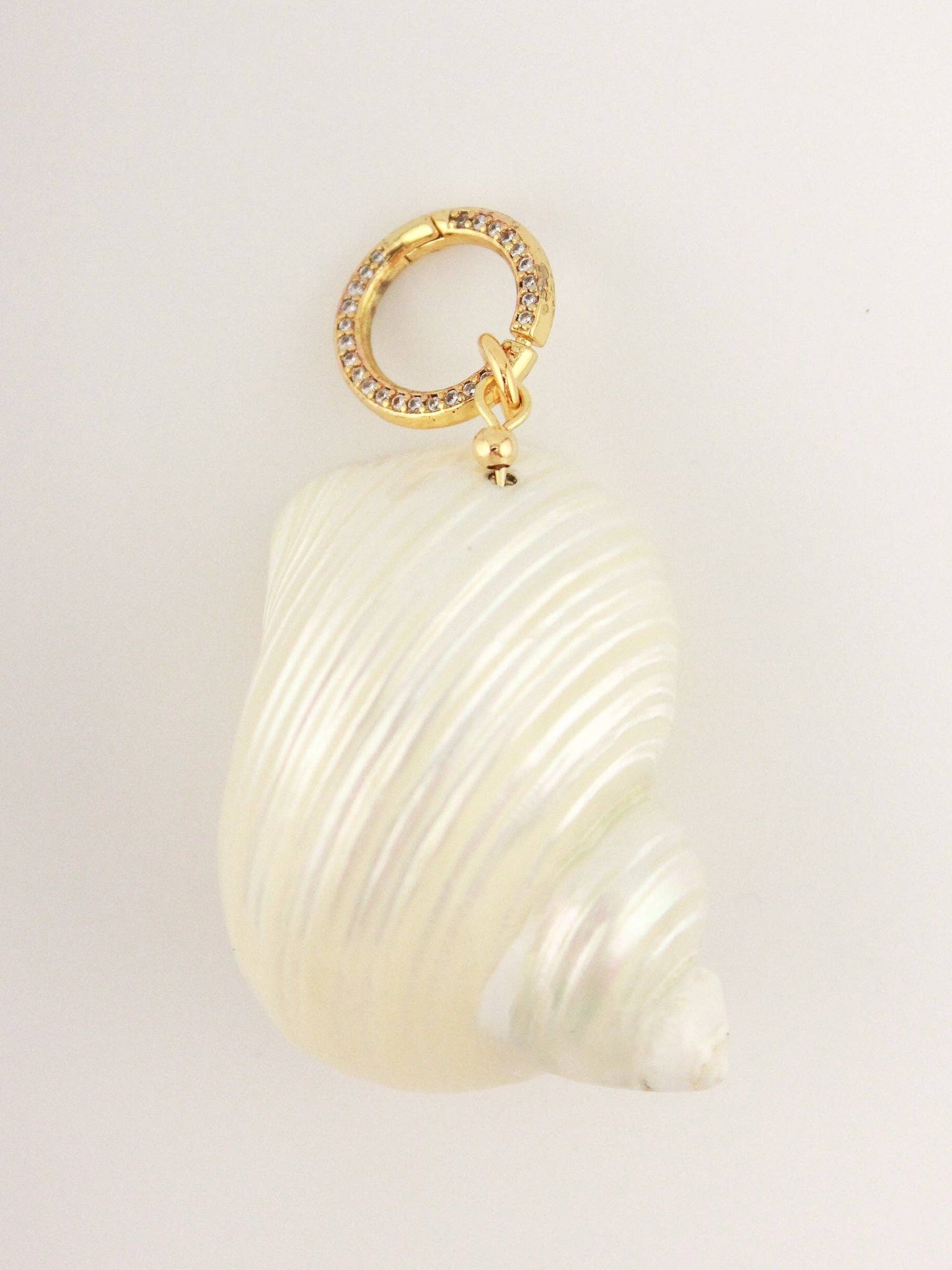Turbo shell charm with CZ micropave gold filled round clasp All charms are sold separately and available to add to different chains and necklaces Made in USA